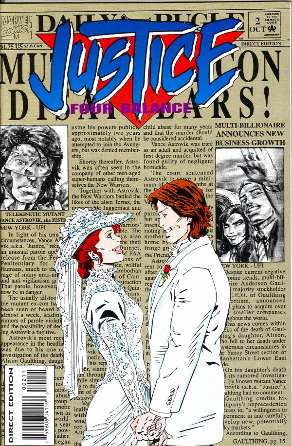 Vance slowly comes to, and realizes that the entire wedding, daughter had all been some form of mentally induced imagery. However, when he comes to he and Firestar fight amongst one another before Firestar defeats him and subdues him. That is when Janice Ian appears and Firestar and Justice learn that it’s the same Hate Monger whom they had encountered previously (see Avengers 341-342). Hate Monger explains that he is a moth and the hate, guilt and anger that Justice and others feel are all raging fires that draw him to them.