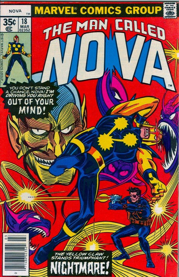 Yellowclaw begins tampering with Nova’s mind – the world for Nova swirling in chaos – until suddenly he remembers where he is – Yellowclaw’s hand on his throat!