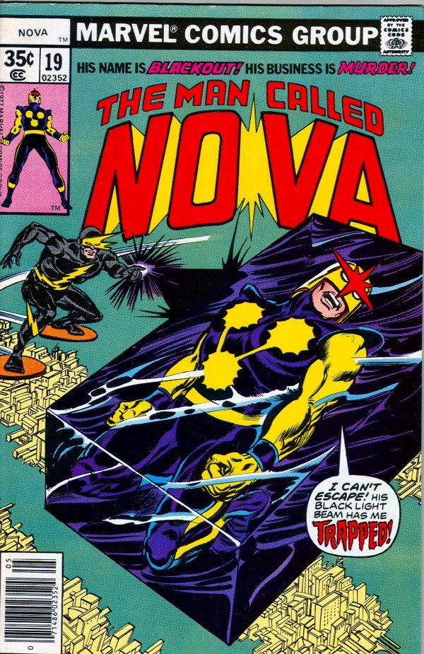 The issue opens up with Nova flying around being concerned that he’s failing Math and Science in High School – when suddenly the sky goes completely black and he’s struck by an unseen beam. The person reveals himself as the sinister Blackout! Nova says he is going to repay Blackout for the sneak attack – but Blackout gets the best of him, encasing him within a block of solid black light.