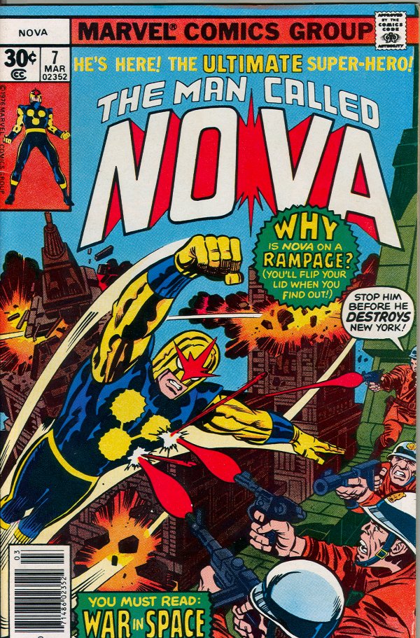 The scene shift to Nova and Condor raiding an Air Force Warehouse for a part that Condor needs for his computer, so that he might be able to reach Nova’s ship that orbits the Earth. They quickly go through the warehouse, taking care of all the guards that stand in the way, before grabbing the part and leaving. Upon returning to the Condor’s Roost, Nova begins to break free of the control; so Condor has Powerhouse drain him so that they can put him back on the machine to brain wash him again. Once that is done, Condor and the rest take off into space and board Nova’s ship. Sphinx watches it unfold knowing what Condor seeks – so Sphinx moves to put a stop to it, and activates the alarm systems on Nova’s ship. They make short work of the guards that come – but just after the battle, Nova regains control of himself. Diamondhead is the first to react by landing a solid punch, but Nova counters his next move by tripping him. Condor moves next to shoot Nova, but he dodges and Nova counters with a punch. Condor commands Powerhouse to kill Nova, but Powerhouse hesitates; but before Nova can do anything else, Diamondhead lands a dishonorable strike to the back of Nova’s head. When Nova regains consciousness, he discovers that Condor, Powerhouse and Diamondhead have escaped, while sending Nova within his ship – to the other side of the universe!