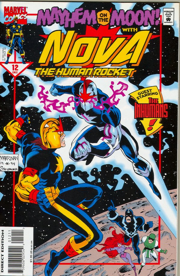 Nova mouths off, despite Nova 0:0’s warning to watch his temper – and before anyone is aware of what’s happening – a fight breaks out against the Inhumans. Star-Thief blasts the ground, shrouding Nova in dust. Medusa and Karnak use this to their advantage to take down Nova. Star-Thief blasts Nova 0:0 who returns the blast, ten fold, only to be punched by Black Bolt. Nova 0:0 figures out that the Inhumans have been manipulated into attacking them. Nova unleashes a blast, despite Nova 0:0’s warning, which causes a small crater, and ends up knocking himself out.