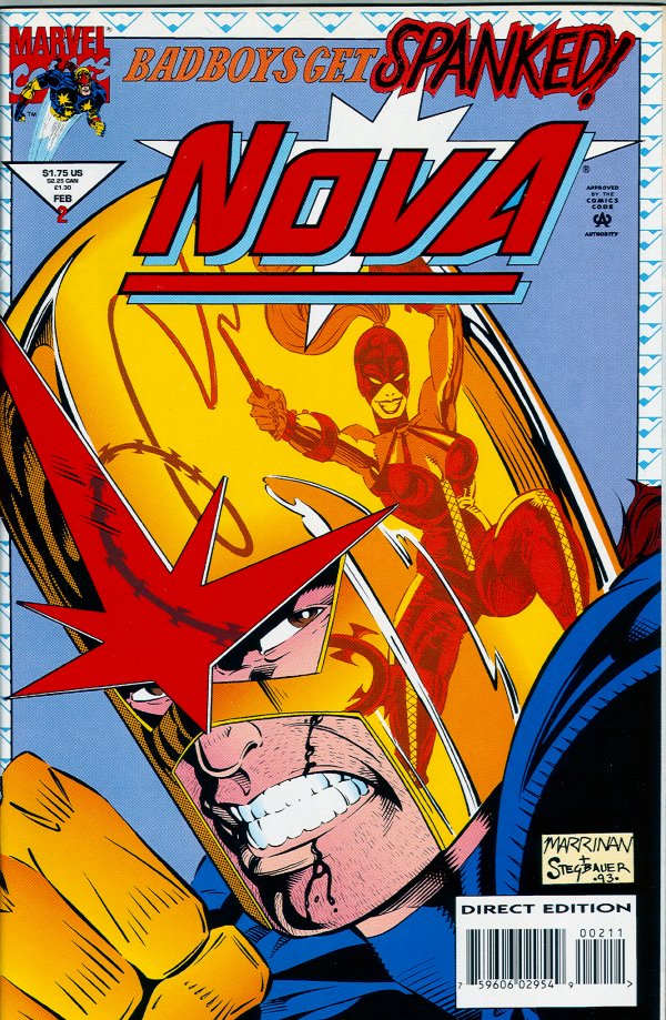 Nova insists to Marissa (Tailhook’s real name) that he can help her – but she declines, refusing to be judged by men who take every chance to crush a woman’s spirit and soul – and with that threatens to jump from the building before becoming some media circus like her sister had become. Nova informs her that he would be able to catch her long before she would hit bottom – but then Laura appears and throws herself off the building, forcing Nova to save her – and allowing Tailhook to fall to her death.