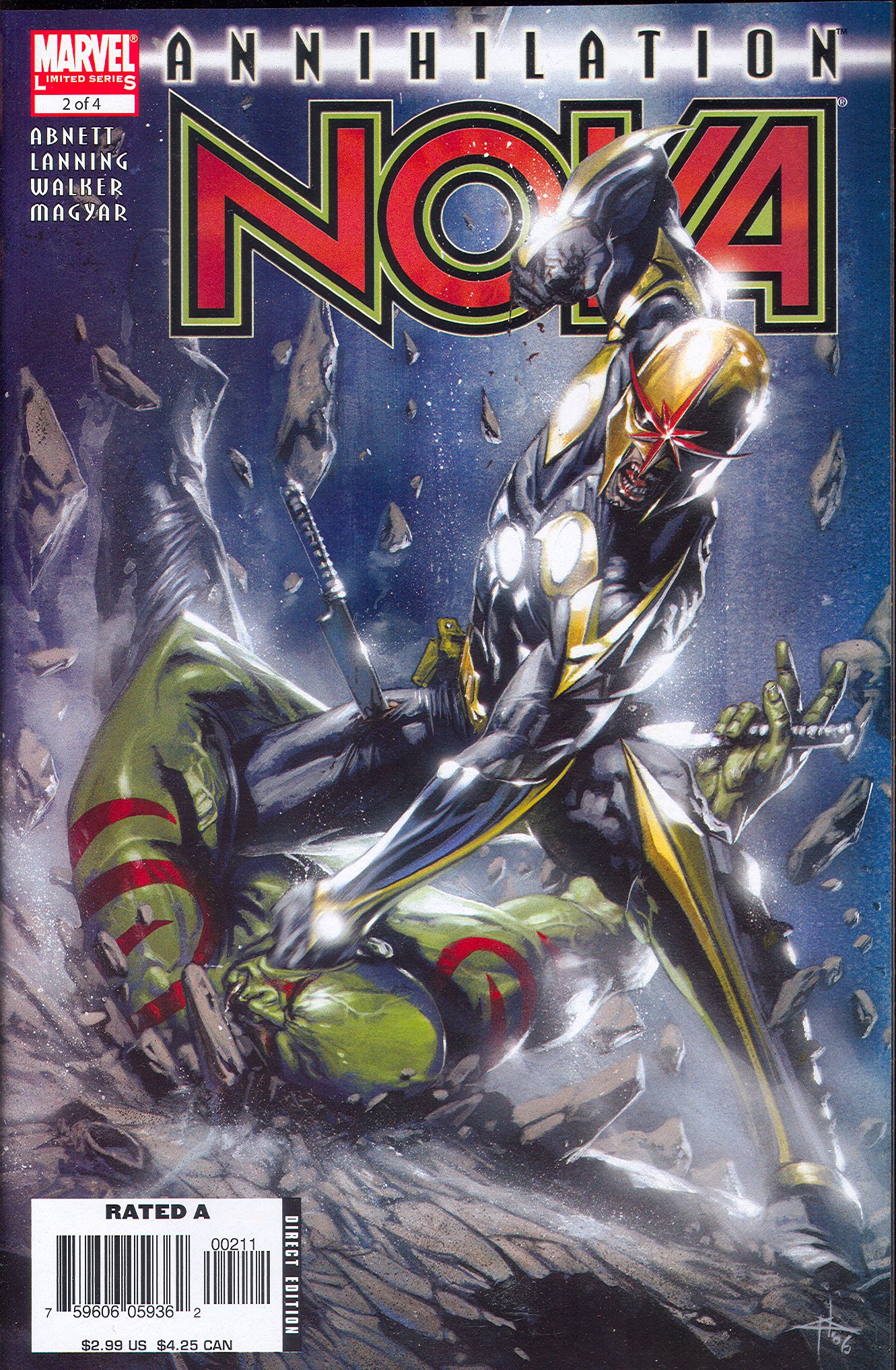The issue begins with Drax explaining that he wants Nova to work together with him and Cammi, because as Nova, he has access to the hangars and the authorization to jump start one of the ships that could get them off the dying planet.