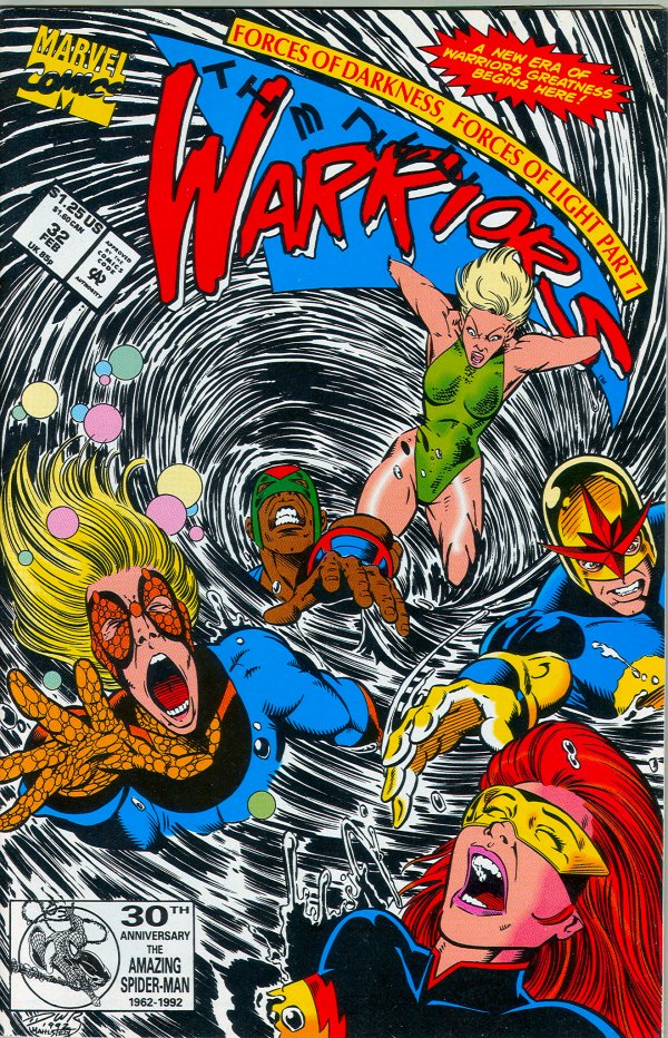 Suddenly a wave of the darkforce washes into the room. Both Rage and Namorita get covered in it - but it is Namorita alone who is changed by it. Her skin becomes black as night, and she attacks Rage, and within a few punches renders him nearly unconscious. Before she can finish him off, Nova appears and strikes her from the back, slamming her down on the ground.