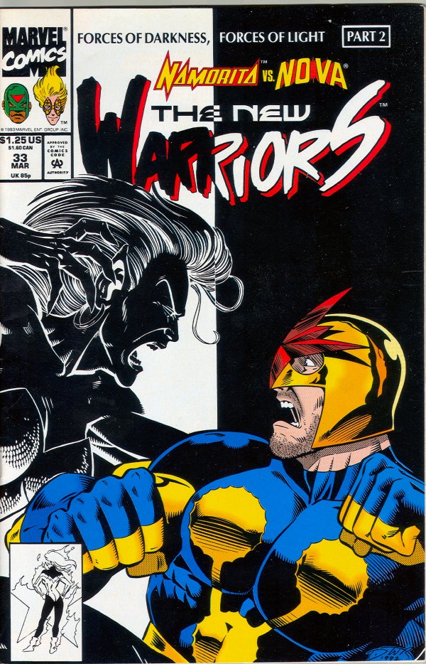Meanwhile at the factory that acted as the New Warriors Crashpad, Nova suddenly flew through the roof - though not under his own control. Having been struck by Namorita so hard that he plowed through the roof, Nova quickly noted how hard Nita was able to strike him, and turned back around and headed for the Crashpad.