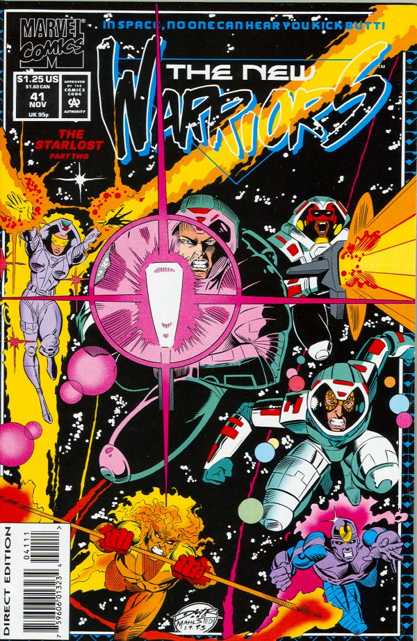 Another scene shift that takes place two days later, we see the New Warriors, along with Firelord and Air Walker in a space craft, flying through the remains of a Shi’ar Empire. When Rich prepares to take on Supernova, Night Thrasher says he’s not equipped, and that they need to let the one person who can cut loose and really give Supernova a run for his money to go ahead and do it. When Firelord agrees, Night Thrasher says he’s not the one he’s talking about. When Air Walker explains that Firelord is more powerful than himself, Night Thrasher lets him know he wasn’t talking about him either.