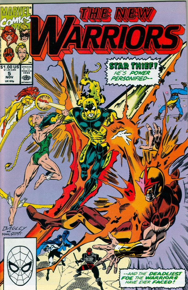 Meanwhile, at the New Warriors headquarters, we see Chord and Dwayne Taylor (better known as Night Thrasher), reviewing the tapes of all the Warriors during a work out. In walks Vance (better known as Marvel Boy, at the time), with a tape recording of what Star Thief had done. Although, Dwayne pointed out, New Warriors aimed for more low key criminals, and more street type criminals, Vance was adament about taking Star Thief down...