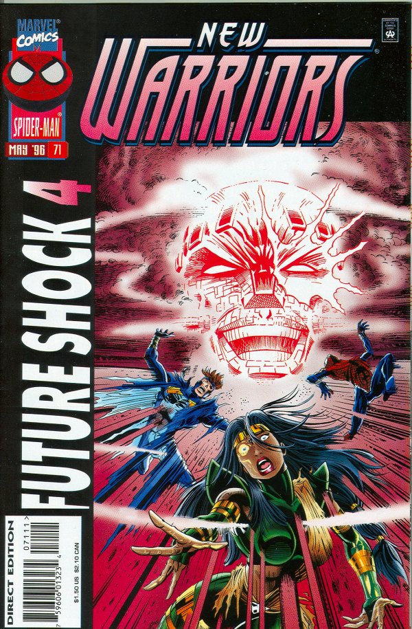Back at the present, Timeslip remains in a trance, when suddenly energy crackles and the Warriors come through the kinetic dimension, followed by the original Speedball, who collides into Timeslip.