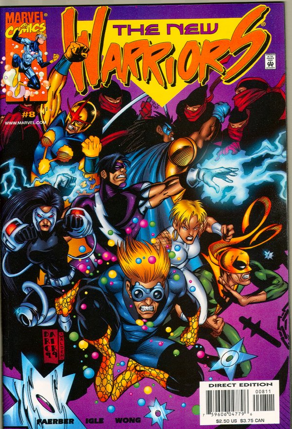 Aegis and Bolt fall victims to stars in the back. Gas pellets nearly take Nova out of action, until Turbo uses her wind to dissipate the gas, but then finds a ninja assassin strikes her from the back. Another assassin takes a swing at Namorita and cuts off her pony tail, while another assassin chains Speedball’s foot and slams him into Namorita.
