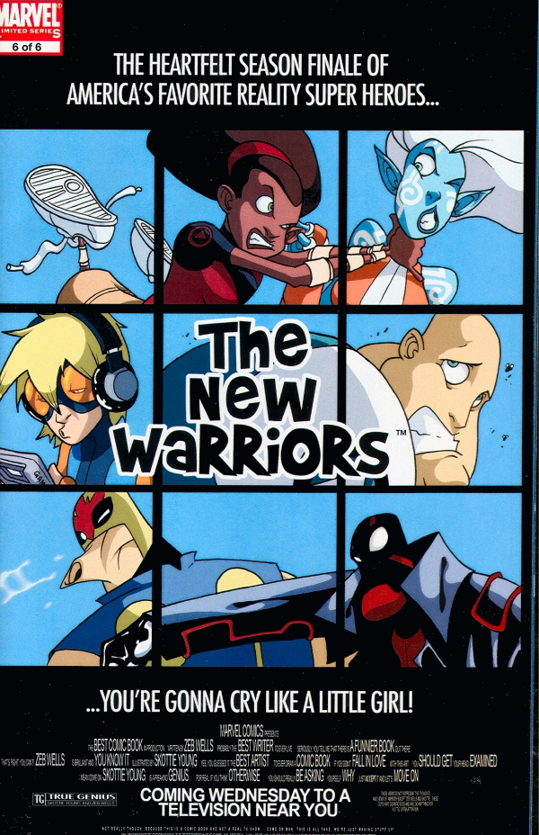 Ashley then arrives and informs the New Warriors that they are on “hiatus.” The Warriors realize that he means the show has been cancelled. Nova gives Debrii a lift back to her home in New York, while the other Warriors sit around and try to decide what they should do from here.